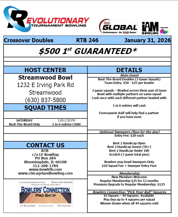 Jan. 31, 2026: Crossover Doubles (RTB 246) at Streamwood Bowl in Streamwood